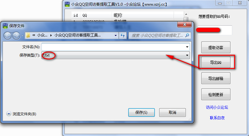点导出QQ会出现保存文件的对话框,文件都是txt文件的