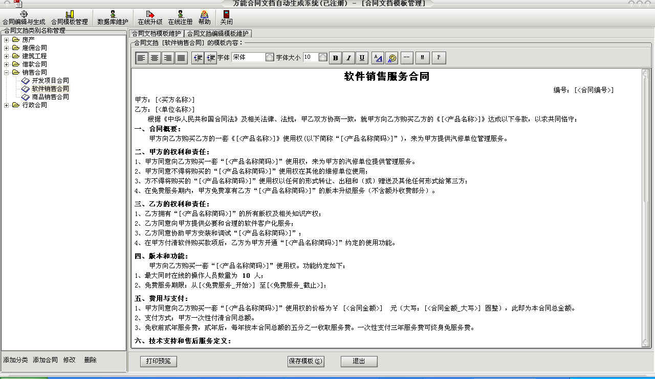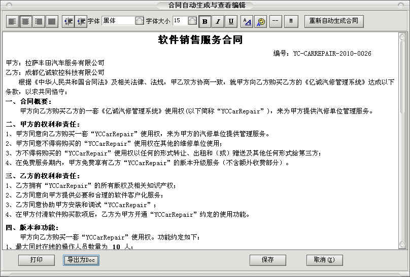 生成的合同,还可以进行修改,也可导出为Word文档,或直接输出到打印机。