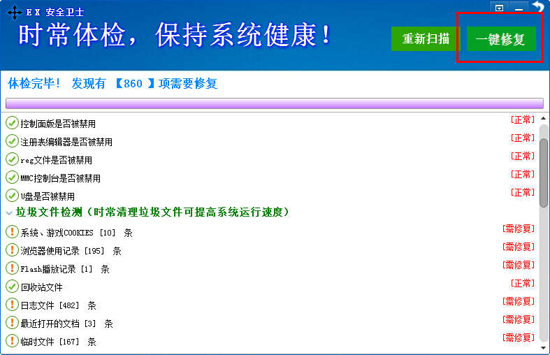 电脑的安全时刻关系到各种文件资料的保密性,为了能够让大家存放在电脑上的各种内容更加的安全,EX安全卫士为大家提供了一个安全可靠的电脑运行环境,有效的杜绝各种各样的病毒和木马,通过扫描保护大家电脑的安全。