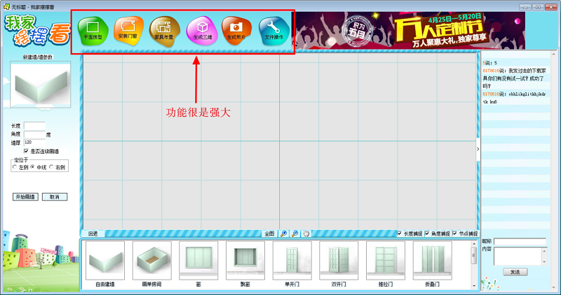 我家摆摆看是一套完全免费的在线互动三维立体家庭装修设计软件。任何用户仅需几分钟便可轻松玩转家居DIY设计,随意改户型,任意摆家具。简单地画出/或调出自家平面房型图(软件房型库中收录有全国主流房型,并不断更新),直接使用现实中的家居建材产品进行模拟装修设计(软件产品库中收录了数十万的真实家居建材产品模型,并不断更新),转换到三维空间立体环境,真实体验家居产品应用于自家后的效果,可多角度漫游查看并存储为常用图片文件格式,成为你装修买家居建材产品时的重要参考依据。还可上传到新居建立自己虚拟现实的“个人家园”,与朋友一起互动交流。
