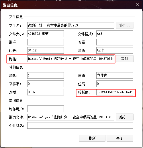 酷狗音乐播放器是生活中经常使用到的听音乐软件,当我们想把酷狗播放器里面的音乐做为空间歌曲背景音乐地址时该怎么操作呢?鸿蒙酷狗永久外链获取器是一款可以将酷狗音乐链接提取转换成MP3外链地址的软,提取到的连接地址是永久的,不会出现丢失情况。