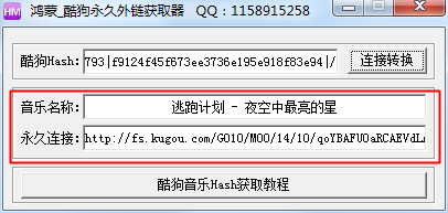 3、打开软件,将地址复制到【酷狗hash】方框内,点击外链转换。