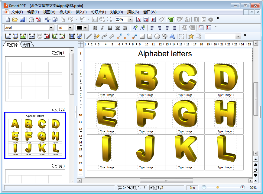 本站之前曾为大家整理带来了26个英文字母ppt折纸素材,本节内容中小编将继续为大家推荐带来26个英文字母素材,不过这次素材中的英文字母均是金色立体的哦!如果你需要这样一份素材的话,那就赶紧点击本文下方相应的下载地址来进行下载吧!