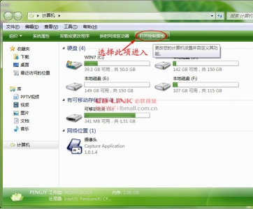 A、打开控制面板:在桌面上双击 “计算机”打开计算机——点击“打开控制面板”。