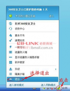 F、右击桌面右下角的杀毒软件及安全卫士图标,选择退出。
