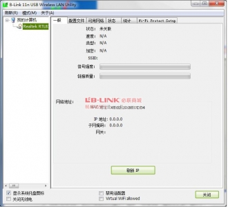 下图为打开软件后的界面。(注意:打开后若菜单栏里,只有“刷新”和“关于”,而没有“模式”,就是软件安装不对,或网卡没有被电脑识别或被禁用了,参照网卡驱动安装操作)