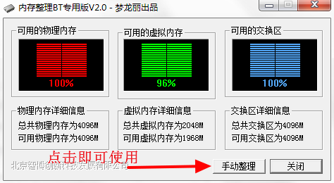 您是否遇到过当Windows启动启动大型软件(如BT)、游戏后,系统反应非常缓慢的情况,这主要是Windows的内存分配策略不积极的缘故,该内存整理工具能够使系统重建内存,使系统恢复到正常状态。