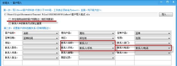 3、将Excel中的列,同客户字段匹配,没进行匹配的列,数据将不会导入;