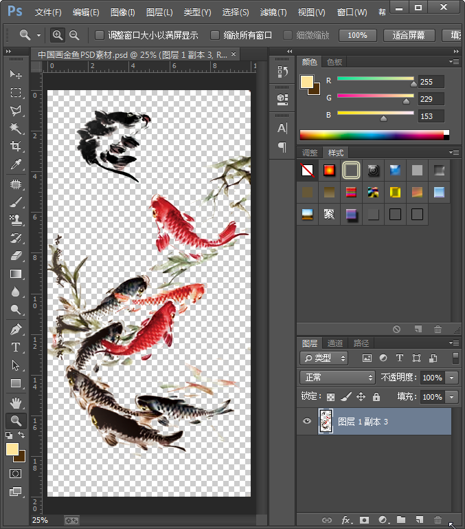 如果要细数这两天的热门词汇的话,那么中国风绝对算是一个。为什么这么说呢?因为2015年Met Ball的主题为“中国:镜花水月(China: Through the Looking Glass)”,因为Met Ball这两天正在如火如荼地进行。看着某些知名明星在Met Ball穿的礼服,小编实在是醉了——其实真地想问一句,您真的穿对了吗?好了,不说了,言归正传——本节内容小编为大家推荐带来的是一份同样是以中国风为主题的素材——中国画金鱼PSD素材——这才是中国style好吗?