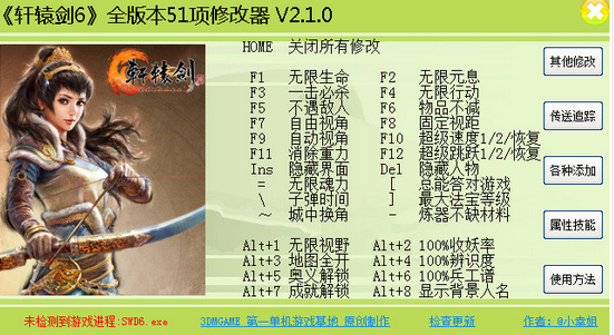 轩辕剑6全版本51项修改器其实就是最受大家喜欢的同名热门游戏的修改工具。它的出现更好的解决大家在游戏中遇到的常见问题,还能更好的帮助大家获得无限魂力、百分百掉宝物等五十一项功能,从而更加容易的在里面玩耍!