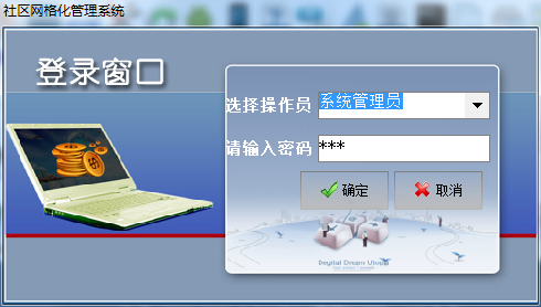 2、双击社区网格化管理系统软件,第一次使用直接点击确定进行登录