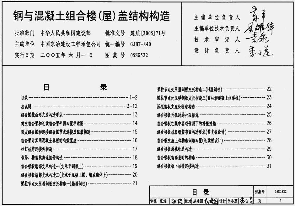 05SG522钢与混凝土组合楼(屋)盖结构构造图集目录