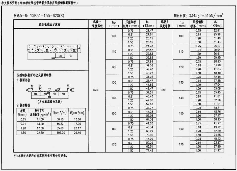附录:相关技术资料(组合板极限抗弯承载力及相应压型钢板截面特性)