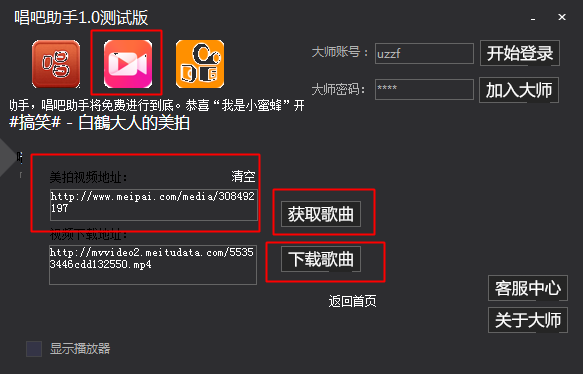3、点击美拍,输入美拍视频地址,获取歌曲,点击下载歌曲