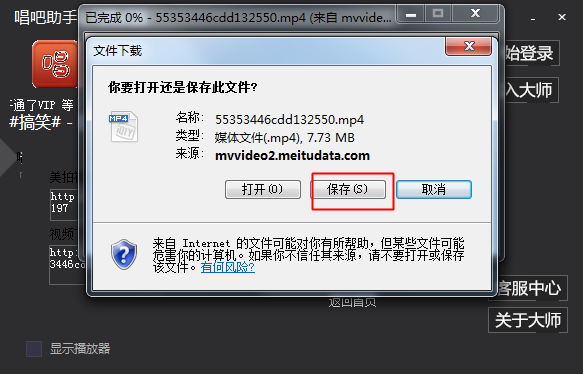 4、点击下载歌曲后,会出现如下情况,点击保存就可以下载了。