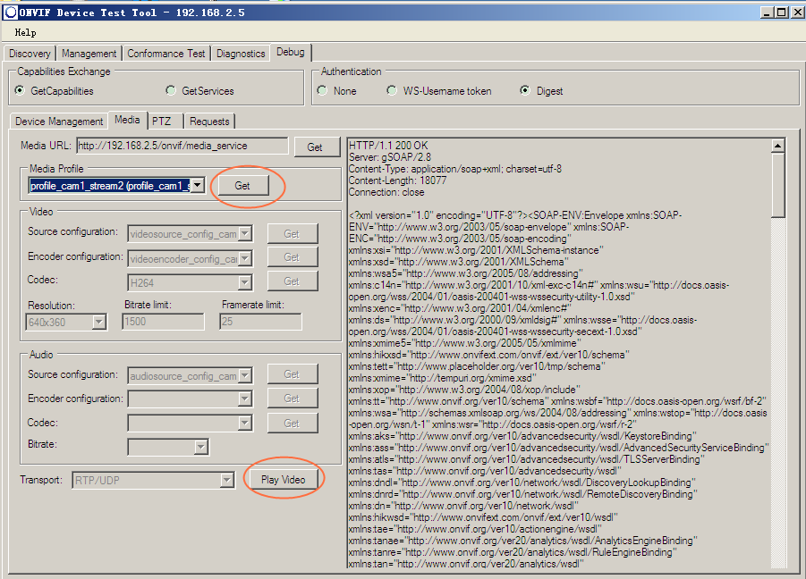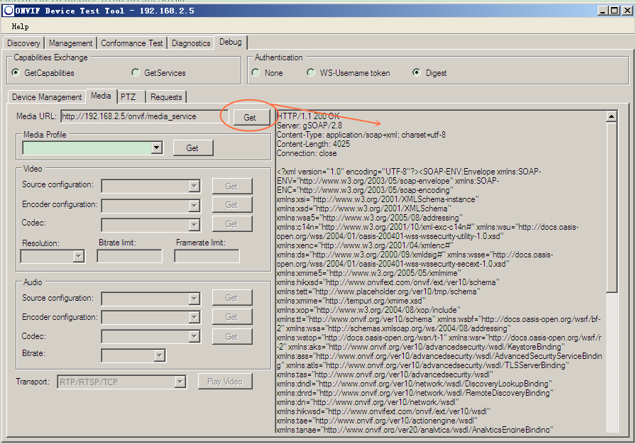 点击Get按钮,可以读取IPC的视频流信息,见右边的大框里。