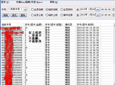 一款辅助改账、删帐、查询的工具,可辅助网吧老板、收银修改错帐,删除旧账等。绿色软件无需安装。其界面美观,多热键设置快捷隐藏界面,ESC键快速退出程序,会员资料,可以删除会员,或给会员加钱(不会在收银系统产生费用)修改用户信息,添加新用户等功能。