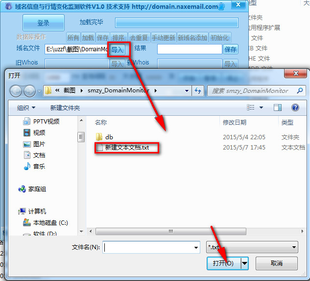 打开软件选择导入域名的txt文件即可。txt文件要自己编辑