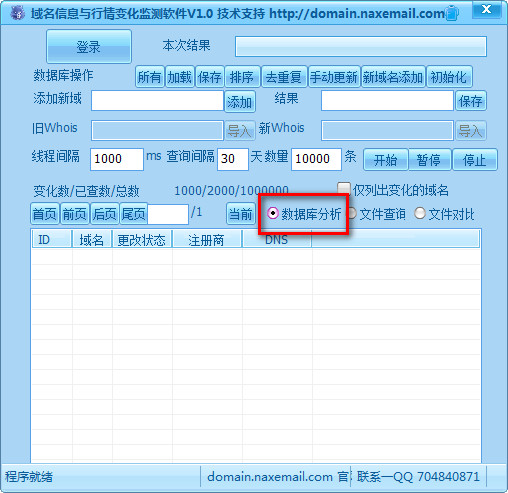 域名信息(行情)变化监测工具适合玩域名的高级用户使用,可以分析例如所有的4字母com域名,拼音域名,单词域名等等有含义的所有域名,重这类域名的每日整体变化,可以分析一类域名的行情。最大支持500W左右的域名数量,单台机器日监测量在50W,可以根据指定时间生成监测变化报告,支持常见的COM,CN, NET, ORG, 也支持CC,CO,UK等各地域名多达30种后缀。
