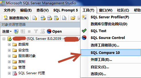 第一步。打开SQL Server → 菜单栏 → 工具 → SQL Compare