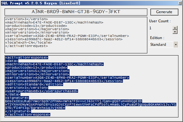 第七步。把代码复制到注册机中间的文本框内生成相应的代码