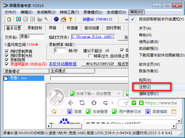 2、安装完成后,运行软件,在帮助栏找到注册。