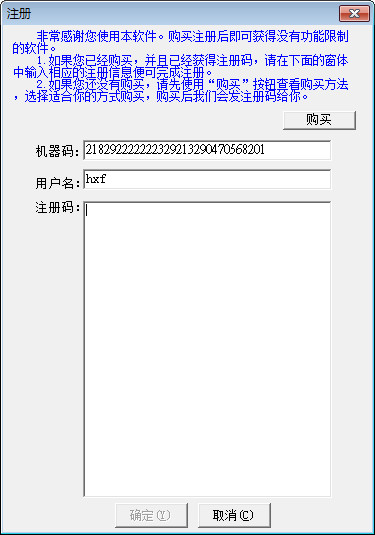 3、打开注册对话框后,会显示机器码,这里的用户名可自由填写。