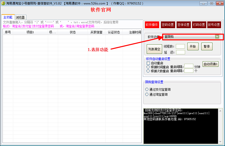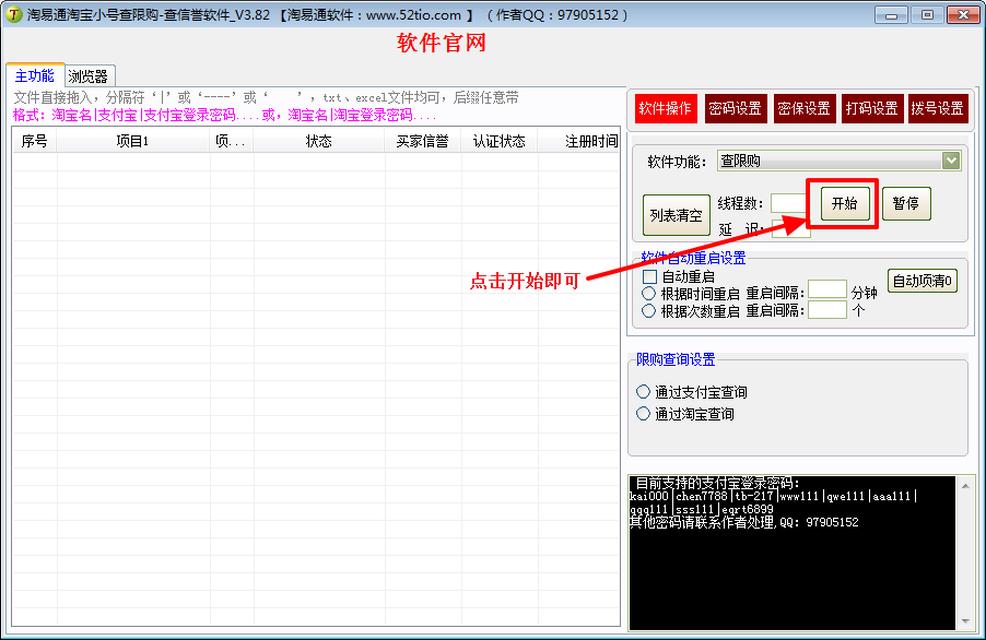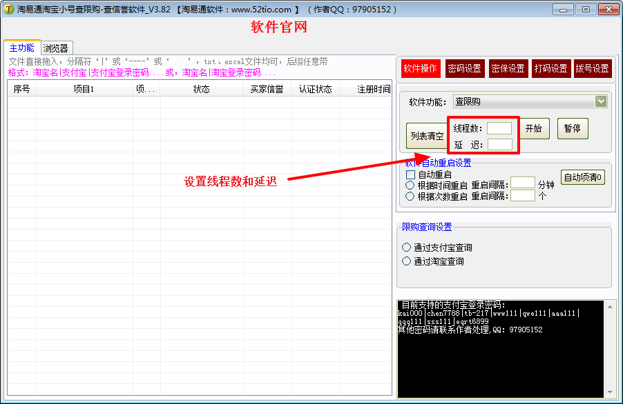 淘易通淘宝小号查限购查信誉软件(淘宝查限购查信誉)是一款绿色好用的由淘易通软件出品的淘宝查限购查信誉的软件。软件功能强大,简单实用,支持批量操作,淘宝小号异常可以查是否限购、没有淘宝登录密码或淘宝不能登录也可以查,免验证码查询,查询结果100%准确,解决了淘宝帐号异常查限购问题,免去了你手动登录手机支付宝查限购的麻烦。