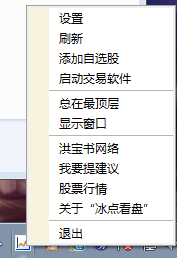 冰点看盘是一款小巧简洁的桌面股票行情软件。软件绿色免费,可以配合其他股票交易软件辅助使用,更好的分析股市行情。软件可以设置热键隐藏窗口,又可以利用空余时间在电脑工作的时候看股票行情,还支持定制股票,各位股民赶快来下载吧。