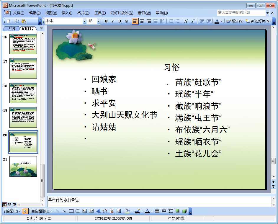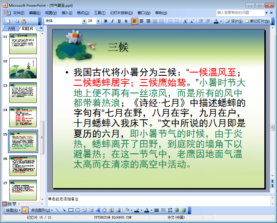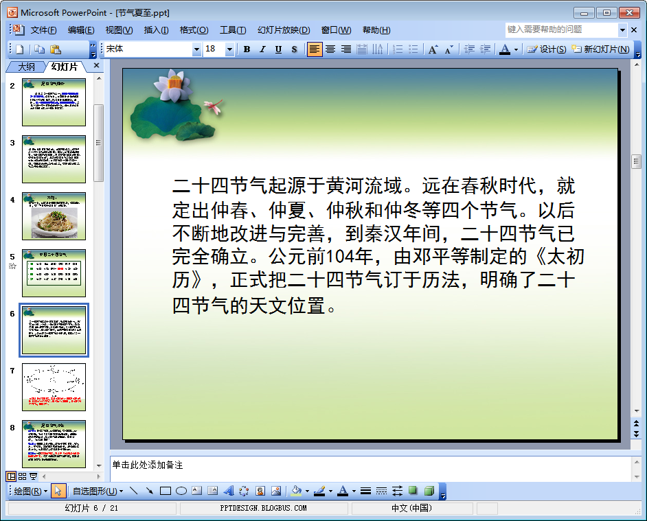 每年公历6月21日或22日为24节气中的夏至,那么除了时间之外,你对夏至还有哪些了解呢?或者说你知道夏至有哪些讲究吗?本节内容小编为大家整理带来的是一份夏至知识讲解PPT,想要对24节气中夏至这一节气有更多了解的朋友可以来看看这份ppt课件哦!该课件为完全免费版,下载之后即可进行查看。