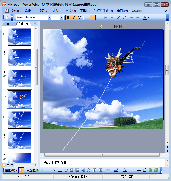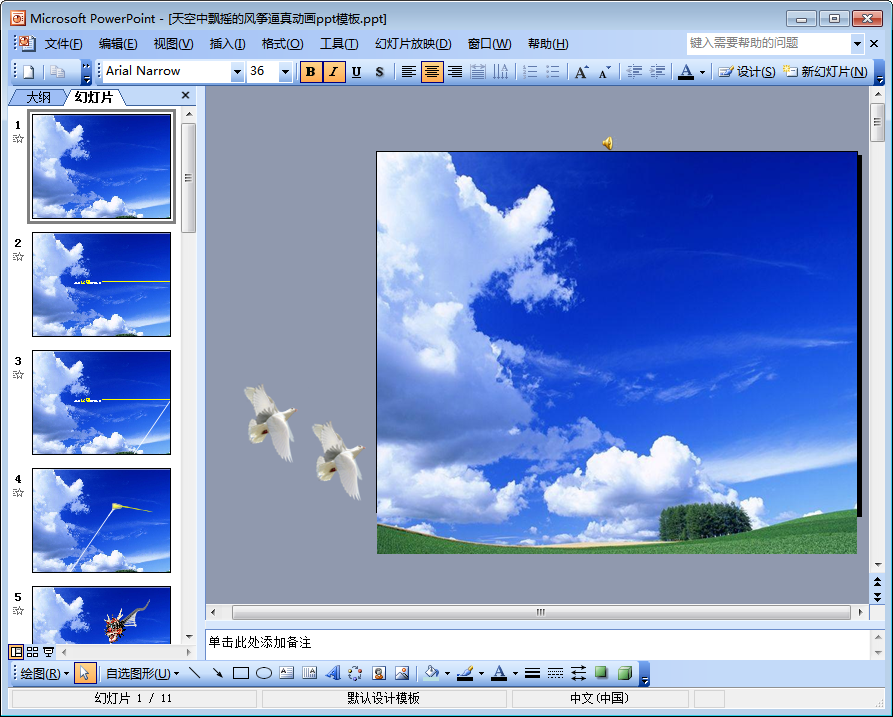 这是一份让人看着就觉得心情顿好的动态ppt模板——不仅有蓝天,还有白云,当然,摇曳在空中的风筝才是主角——所以咱们还是先称这份动态ppt模板为蓝天白云动态风筝PPT模板吧!该ppt模板共有11页,需要风筝动态ppt或是风筝ppt背景图片的朋友都可以点击本文相应的下载地址来下载使用这份ppt模板哦!