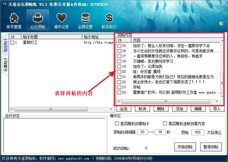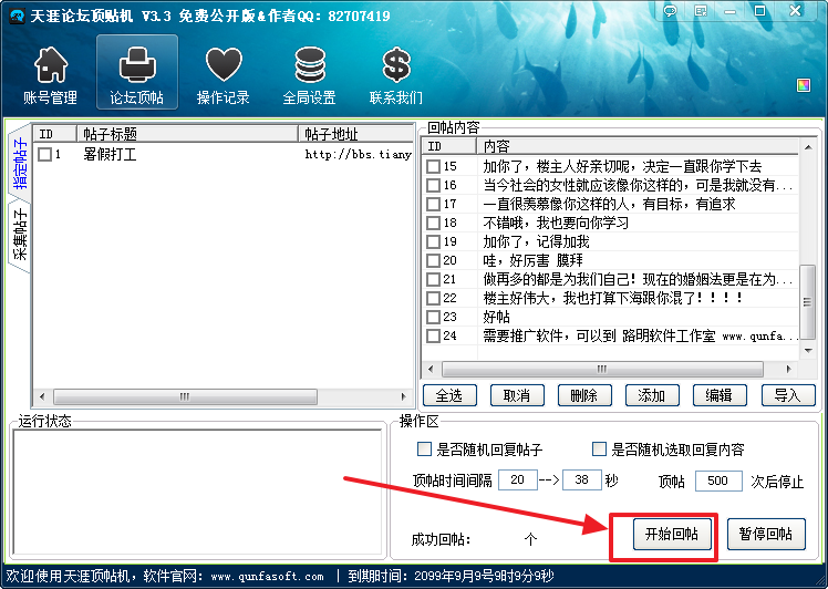 2、全自动挂机回帖,无需人工干预!真正做到挂机操作!