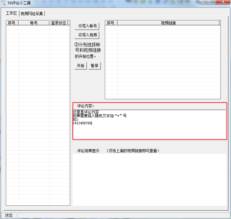 3、账号循环评论,可自定义每个账号评论数。评论内容随机发送。