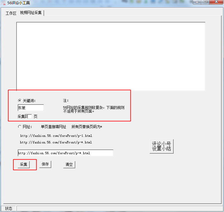4、视频网址采集方法:选择关键词和页数,点击【采集】进行视频网址的采集