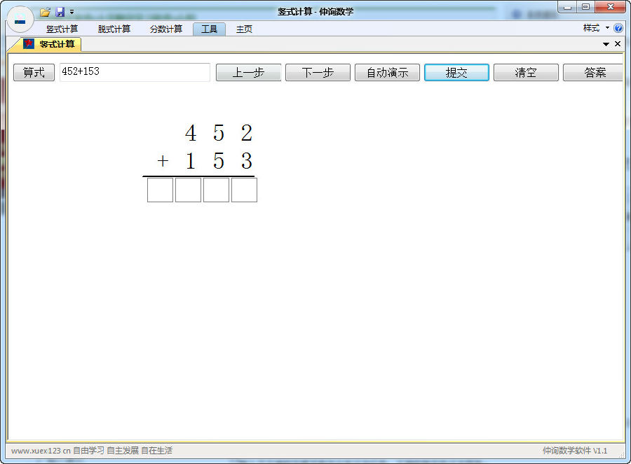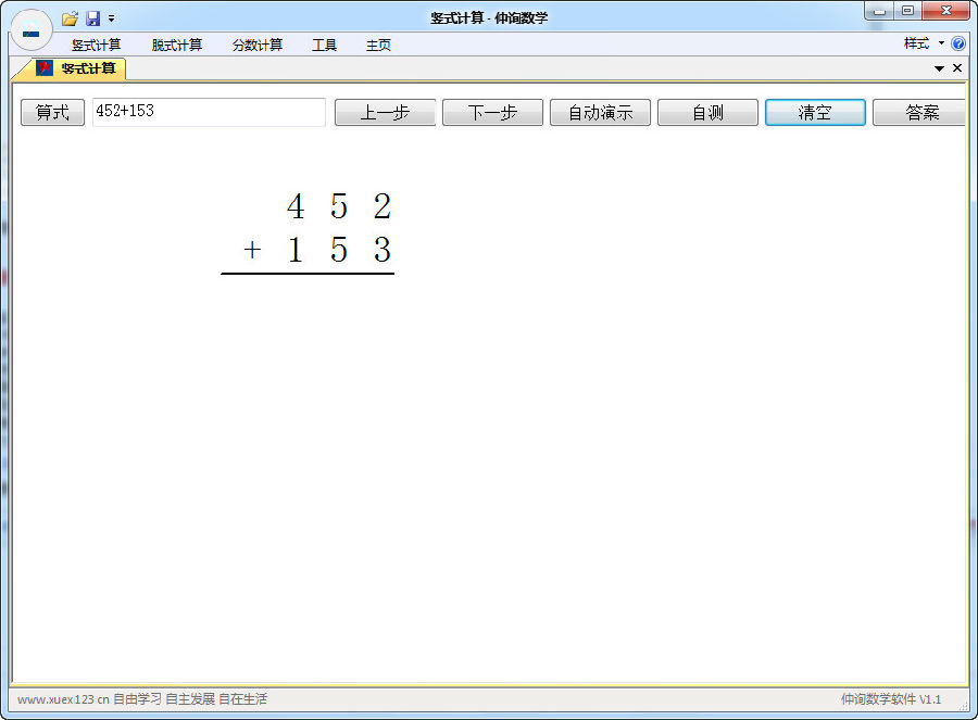 点击该按钮后,程序将每三秒自动演示下一步计算过程,直到得到计算结果。