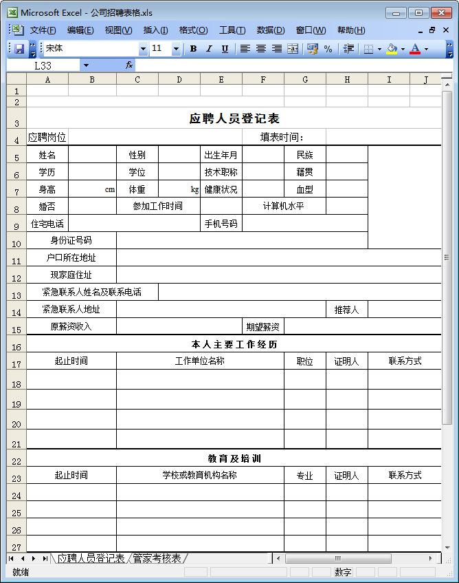 应聘人员登记表模板图样