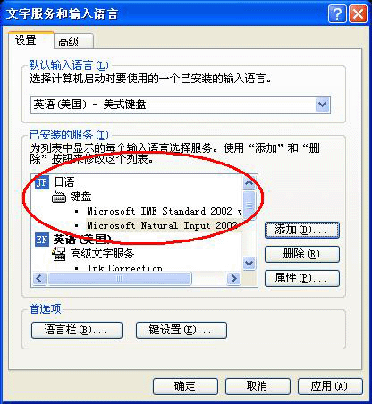通过控制面板调出微软日文输入法(以XP系统为例)