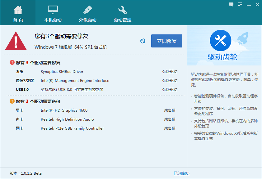 驱动齿轮是一款专业的智能化驱动管理工具,软件能够帮助用户一键检测电脑未安装的、不兼容的、版本旧的等各种问题的驱动,操作更方便,简单快捷,支持驱动的下载安装与卸载,并且支持驱动备份与还原。