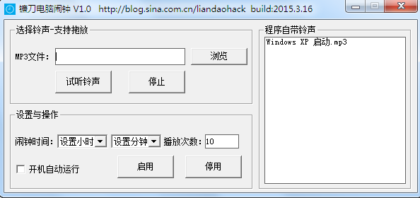 镰刀电脑闹钟是一款具有精巧易用的特性和非常强大的功能的电脑闹钟软件,是一个起定时提醒的好帮手。