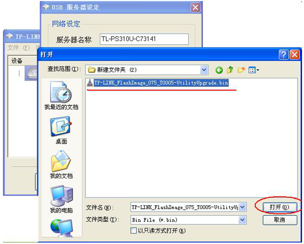 选择MFP_and_Storage_Server_Setup_101029.zip中解压出来的TP-LINK_FlashImage_075_T0005-UtilityUpgrade.bin(该固件为英文版固件)文件升级即可。