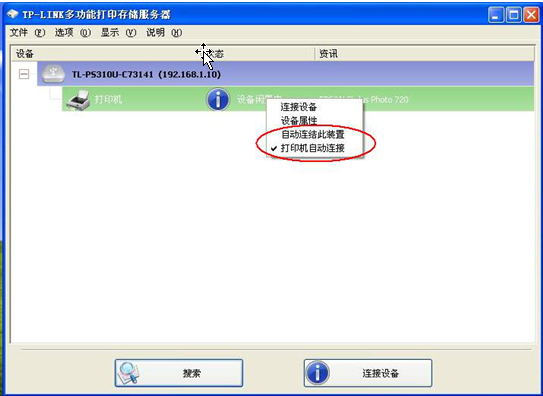 TL-PS310U支持多人共享使用多种USB接口设备,如:MFP打印机、普通打印机、扫描仪、移动硬盘、U盘、读卡器、USB摄像头、USB麦克风等。通过连接一个USB集线器,最多可同时共享4台USB接口设备。这里为您提供的是TL-PS310U配置软件(TL-PS310U多功能打印存储服务器配置工具)