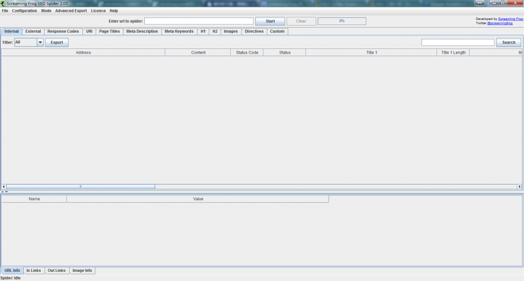 Screaming Frog SEO Spider的界面