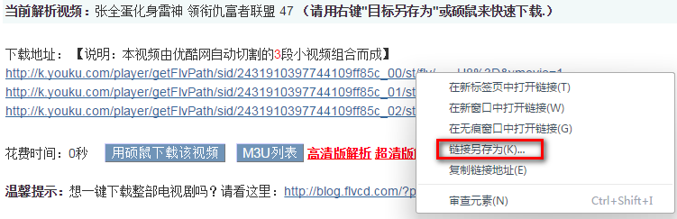 用硕鼠FLV视频解析广告绕过工具将要下载的视频链接复制到软件的视频链接,单击下载击可。