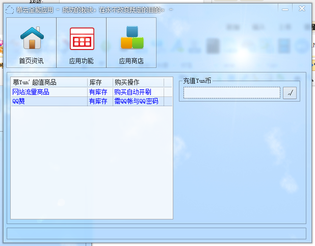 4、应用商店(超值商店现未开放,只可充值Yun币)