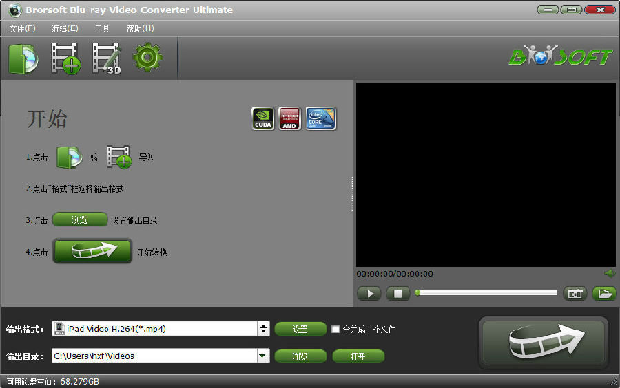 1、Brorsoft Blu-ray Video Converter有原生的简体中文界面,如下图所示