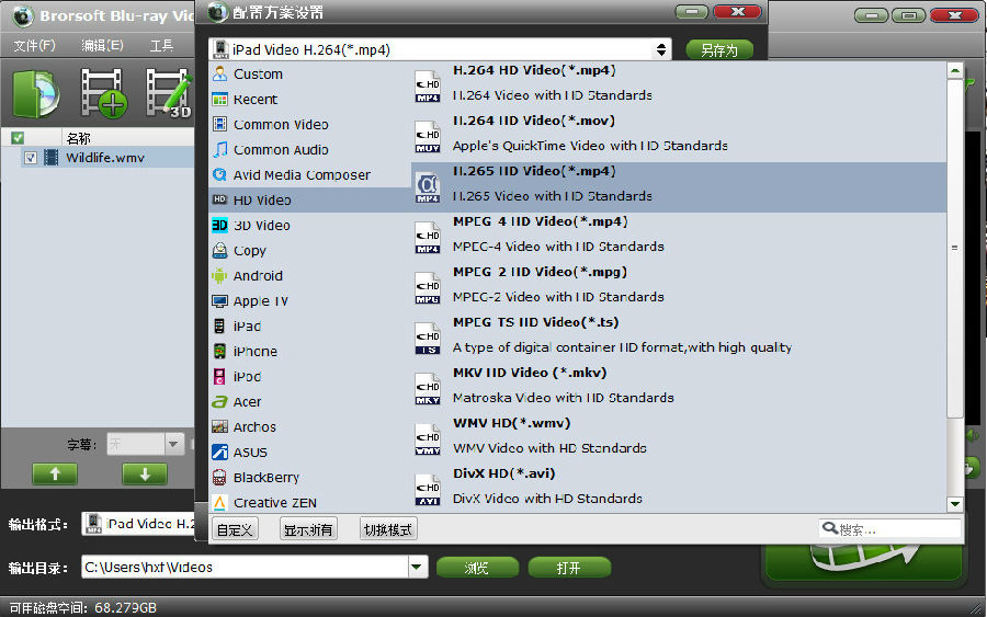 3、Brorsoft Blu-ray Video Converter有丰富的输出格式供你选择。