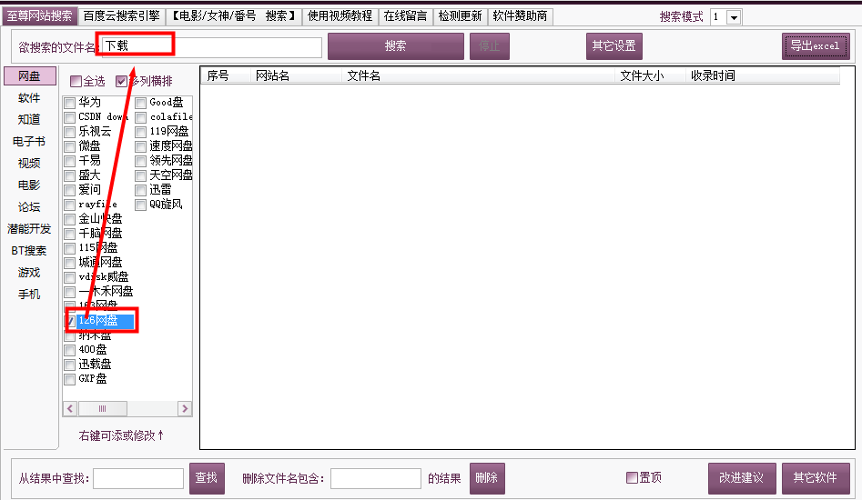 打开软件,选择“126网盘”,输入关键词,就能够点击搜索