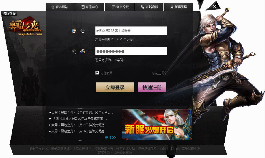 大黑黑暗之光205服将于5月16日15:00火爆开启,东坡小编为您带来大黑黑暗之光官方微端,它可以快速登录游戏并领取最新礼包,还有大量最新游戏攻略给你参考,有需要的赶紧下载吧!