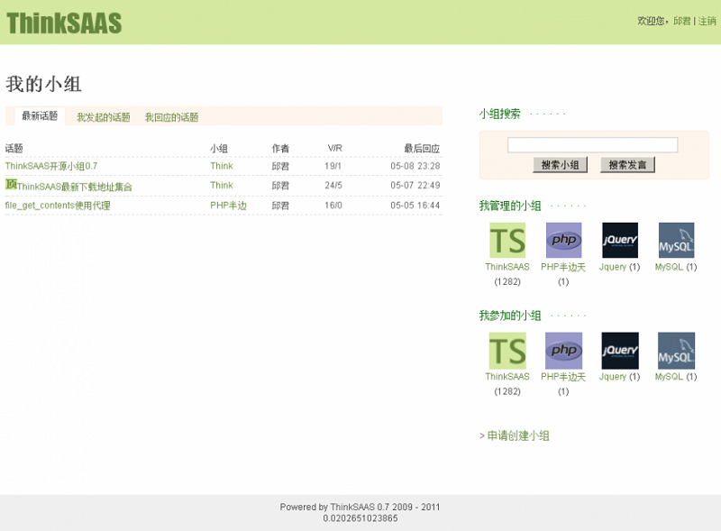 ThinkSAAS是国内知名的开源社区,你可以用它来搭建讨论组,bbs和圈子的社区系统。它拥有简单、高扩展的社区开发系统,ThinkSAAS可以帮你搭建与众不同的交流社区。为你的源代码相互分享提供便利。欢迎下载!