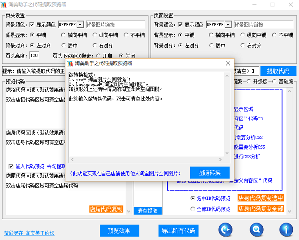 1、增加图链转换功能(实现在自己店铺使用他人淘宝图片空间图片)。
